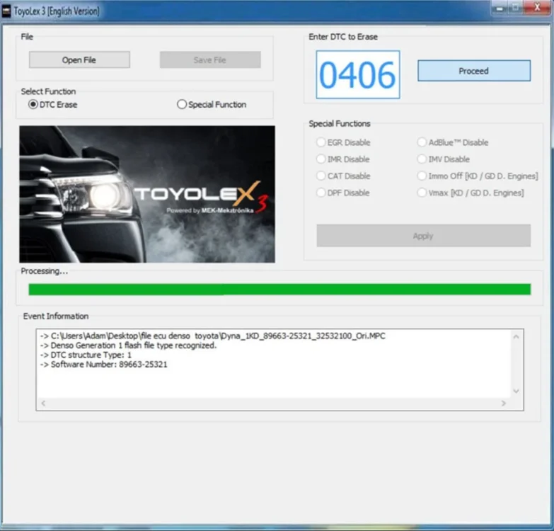 – Supports Generation 1, 2 and 3 files from Toyota and Lexus Denso ECUs for DTC erase function and special